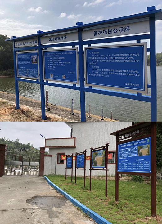 廣東省河湖及水利工程河湖管理范圍及水利工程管理與保護(hù)范圍劃界工作這2年已大力開展,我司有幸成為其中的一員,為廣東省河湖及水利工程盡一點(diǎn)綿薄之力。我司著力于河湖水庫工程的標(biāo)準(zhǔn)化建設(shè)及水庫標(biāo)識(shí)標(biāo)牌項(xiàng)目產(chǎn)品的生產(chǎn)、制作、及施工安裝。2020年我司前后完成了珠海市水庫標(biāo)識(shí)標(biāo)牌項(xiàng)目(珠海市香洲區(qū)、高新區(qū)、高欄港區(qū)、萬山區(qū)、水控集團(tuán))管轄范圍內(nèi)的水庫標(biāo)識(shí)牌項(xiàng)目;韶關(guān)市河湖水庫標(biāo)識(shí)牌項(xiàng)目;清遠(yuǎn)市河湖水庫標(biāo)識(shí)標(biāo)牌項(xiàng)目;陽江市河湖水庫標(biāo)識(shí)標(biāo)牌項(xiàng)目;江門市河湖水庫標(biāo)識(shí)標(biāo)牌項(xiàng)目;廣州市河湖水庫標(biāo)識(shí)標(biāo)牌項(xiàng)目;佛山市河湖水庫標(biāo)識(shí)標(biāo)牌項(xiàng)目;肇慶市河湖水庫標(biāo)識(shí)標(biāo)牌項(xiàng)目;惠州市河湖水庫標(biāo)識(shí)標(biāo)牌項(xiàng)目;河源市河湖水庫標(biāo)識(shí)標(biāo)牌項(xiàng)目;深圳市河湖水庫標(biāo)識(shí)標(biāo)牌項(xiàng)目;以及汕頭揭陽地區(qū)的河湖水庫標(biāo)識(shí)標(biāo)牌項(xiàng)目。