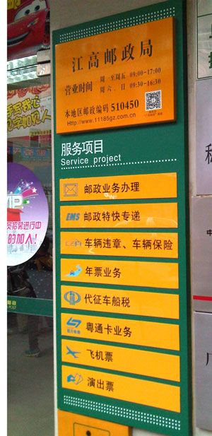 在標(biāo)識行業(yè),標(biāo)識牌制作方案有很多種。這里說一下郵政營業(yè)導(dǎo)向牌,這樣一種非常常見的標(biāo)識牌。