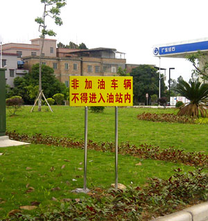 加油站,除了要在內(nèi)部做好其統(tǒng)一風(fēng)格的楣頭和標(biāo)牌大字,還需要在入口處做相應(yīng)的警示牌,以方