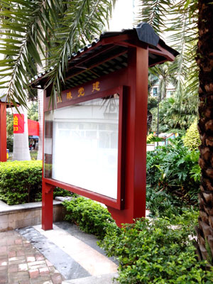 跟每個(gè)行業(yè)一樣,力求創(chuàng)新,追求完美,也是標(biāo)識(shí)行業(yè)的特點(diǎn)?,F(xiàn)在的標(biāo)識(shí)牌很多都固定材料及工藝,不能與自然環(huán)境達(dá)到和諧統(tǒng)一,為此,很多設(shè)計(jì)和技術(shù)人員不斷研究創(chuàng)新,將金屬標(biāo)識(shí)牌與仿古結(jié)合。仿古的宣傳欄由此而來(lái)。