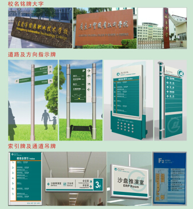 隨著社會體制的變化,辦學(xué)條件的提升,現(xiàn)在的教育機(jī)構(gòu)教學(xué)樓,辦公檔,特別是一些大專院校,重點(diǎn)學(xué)校都開始引進(jìn)標(biāo)識標(biāo)牌做為一個(gè)學(xué)校的形象而存在,廣州市民鑫廣告標(biāo)識標(biāo)牌工程有限公司可為您提供學(xué)校(教育機(jī)構(gòu))標(biāo)識標(biāo)牌導(dǎo)向系統(tǒng)的設(shè)計(jì)、生產(chǎn)制作及施工安裝服務(wù)。學(xué)校標(biāo)識牌就其功能性主要包括以下方面,可供參考: