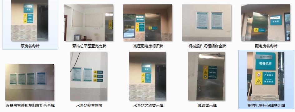 1、水閘大壩、泵站名稱牌;2、水閘大壩、泵站工程區(qū)域辦公導(dǎo)視牌;3、水閘大壩、泵站樓層索引牌,科室門牌、辦公室門牌;4、泵站內(nèi)巡視路線牌,巡視點(diǎn)牌;5、水閘泵站參觀提示牌;6、水閘大壩、泵站內(nèi)立牌工程簡(jiǎn)介牌,水法規(guī)牌,安全警示牌,管護(hù)范圍牌,不銹鋼指示牌,鋁合金材料標(biāo)識(shí)牌;7、水閘大壩、泵站管理規(guī)章制度,上墻制度等標(biāo)識(shí)牌;7、水閘大壩、泵站內(nèi)道路交通標(biāo)線以及設(shè)備定標(biāo)線。